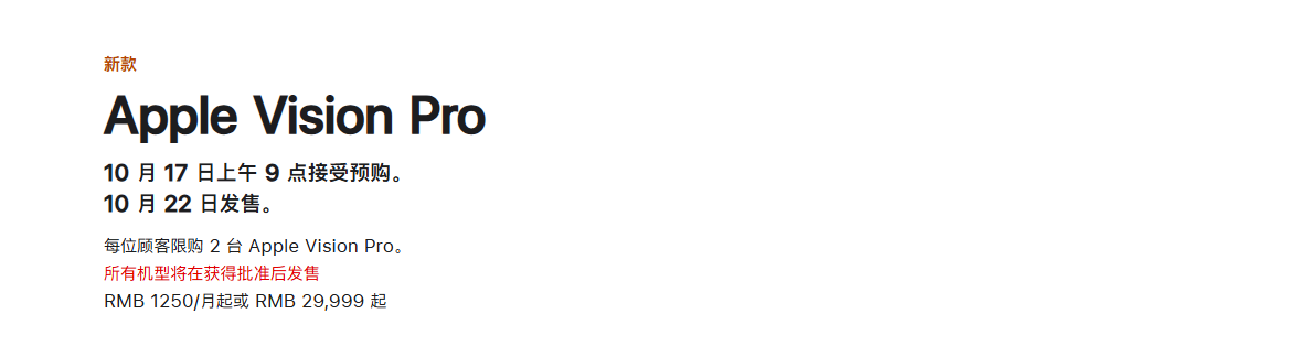 【CNMO科技消息】10月15日,CNMO从苹果官方网站了解到,苹果2025款Vision Pro已经正式上线,10月17日上午9点开始接受预购,10月22日正式发售,售价为29999元。
