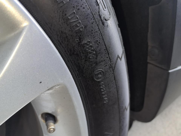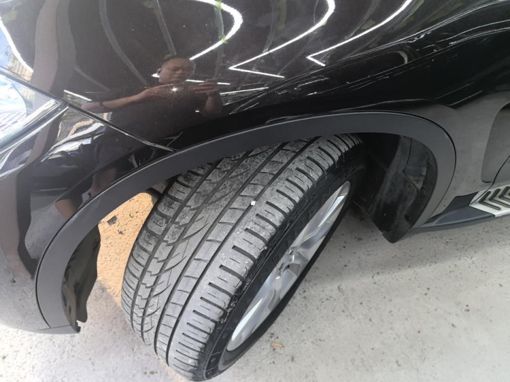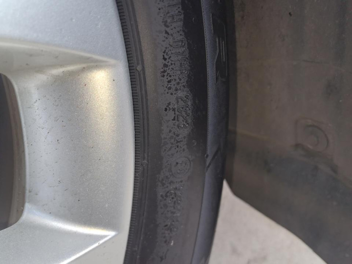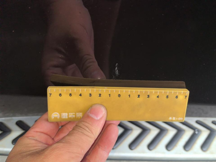 在外观检测部分,这辆车的表现一般,可能是前任车主的驾驶技术一般,或者对车辆使用并不是很爱惜。在外观部分的瑕疵还是比较多的,具体的瑕疵项分别为:右前车门喷漆、前保险杠拆卸、右后翼子板变形、后保险杠喷漆、左前车门喷漆、左后车门钣金、右后车门剐蹭、左前翼子板更换、左后翼子板喷漆、左侧底边梁外饰板剐蹭、右前翼子板更换、前挡玻璃多处击伤、左前大灯拆卸、右前大灯拆卸、左前轮胎更换、右前轮胎更换、左后轮胎更换、右后轮胎更换、左前轮毂剐蹭、右前轮毂剐蹭、左后轮毂剐蹭、右后轮毂剐蹭、右前轮眉更换、左前轮眉剐蹭。下面我们将为您展示这些瑕疵项的实拍图。