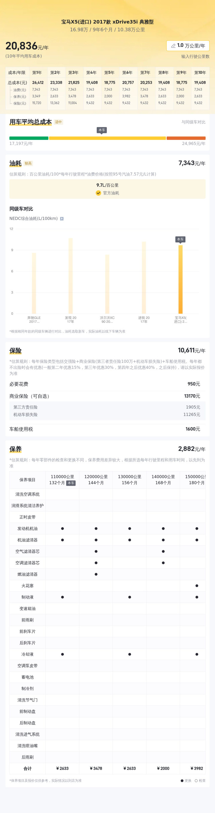 在用车成本部分,根据懂车帝对这款车的大数据分析,该车的10年平均用车成本约21245元/年。